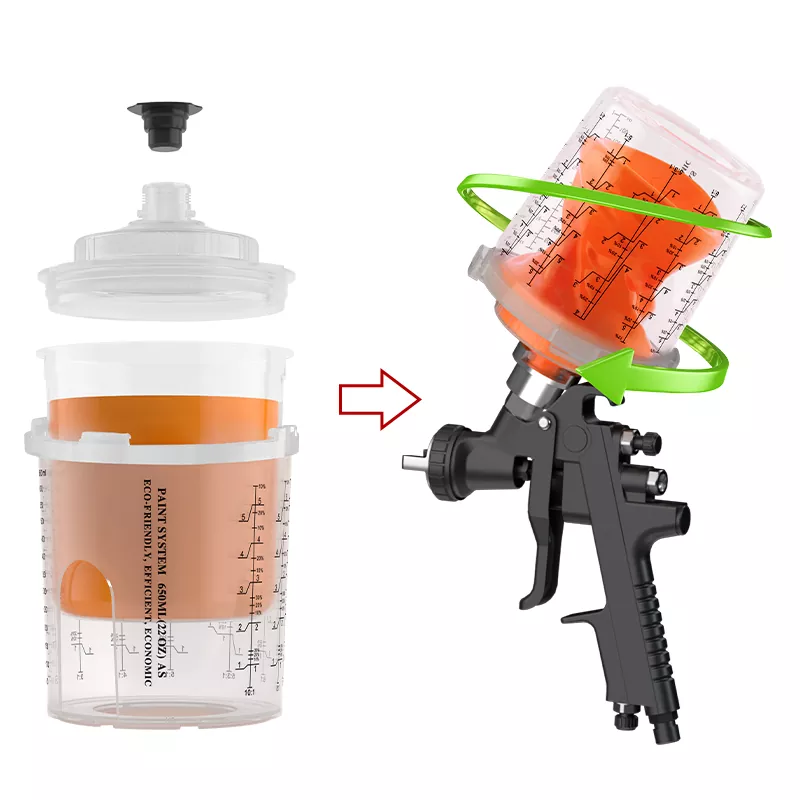 Le tazze di pistole a spruzzo usa e getta ayspat consentono cambi di colore rapidi durante la pittura, eliminando le variazioni di colore causate dai residui di vernice nelle tradizionali tazze di metallo a causa della pulizia incompleta. È particolarmente adatto per spruzzare vernici di fascia alta come perle e vernici metalliche. Attualmente è ampiamente utilizzato nella pittura a spruzzo automobilistico originale, nella riparazione del corpo del negozio 4S e nella pittura personalizzata di veicoli modificati.