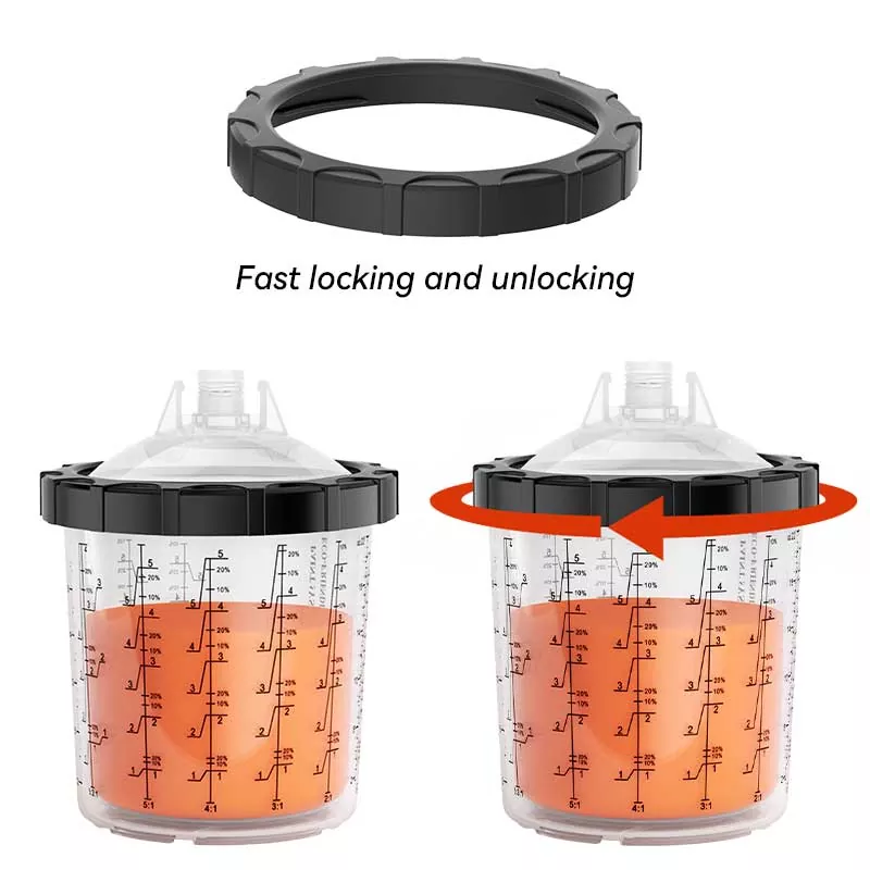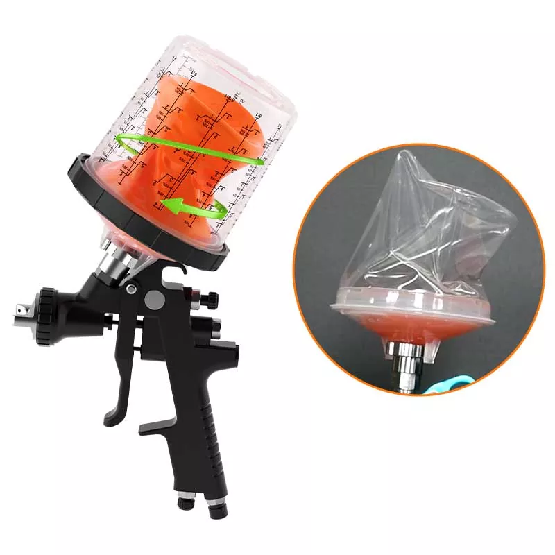 Questo sistema di tazze di vernice usa e getta da 400 ml 1.0 sostituisce sostanzialmente la tradizionale tazza di alimentazione a gravità perché non solo risparmia più vernice, ma migliora anche l'efficienza della verniciatura. Nello specifico, il design raffinato della spirale automatica verso il basso del rivestimento durante la verniciatura fa sì che la vernice venga completamente utilizzata; nel frattempo, il design con bloccaggio rapido e sostituzione del rivestimento evita il lavaggio della tazza, consentendo di eseguire il lavoro di verniciatura in modo efficiente e ripetuto. Disponiamo di adattatori per quasi tutte le marche di pistole a spruzzo sul mercato per soddisfare le esigenze di esperienza dei diversi appassionati di pistole a spruzzo. L'adattatore è realizzato in acciaio inossidabile, resistente alla corrosione della vernice e molto durevole. La stretta combinazione del rivestimento con il coperchio garantisce che il sistema a tazza non perda vernice durante la verniciatura e supporta la conservazione a lungo termine della vernice inutilizzata per evitare sprechi.