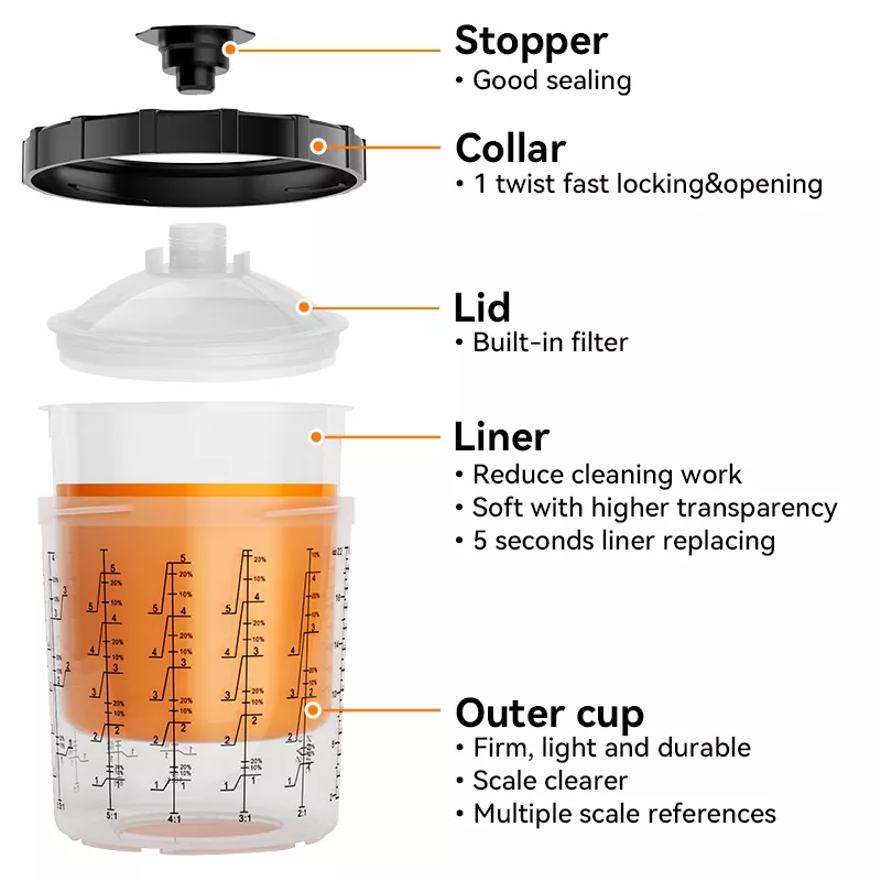 Il nuovo prodotto --- 400ML Speedy Paint System 2.0 è fornito esclusivamente da Qingdao Aspaint! L'esclusivo design della guida sul coperchio consente sia ai pittori principianti che a quelli esperti di collegare rapidamente la tazza alla pistola a spruzzo, migliorando significativamente l'efficienza di spruzzatura. L'adattatore in acciaio inossidabile è molto resistente alla corrosione, inoltre la coppa esterna realizzata con la nuova materia prima PP è più solida e durevole. Inoltre, disponiamo di un team di progettazione professionale per soddisfare le vostre esigenze di personalizzazione completa. Qingdao Aspaint si concentra sulla progettazione e sullo sviluppo di sistemi di tazze di vernice usa e getta. Diamo il benvenuto agli appassionati di verniciatura a spruzzo che ci lasciano messaggi sui social media. Ricordati di richiedere campioni gratuiti per i test!