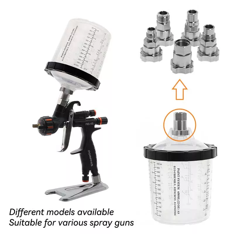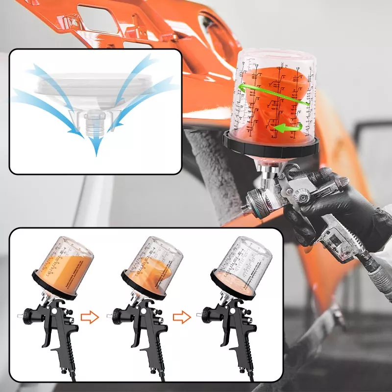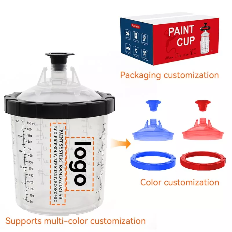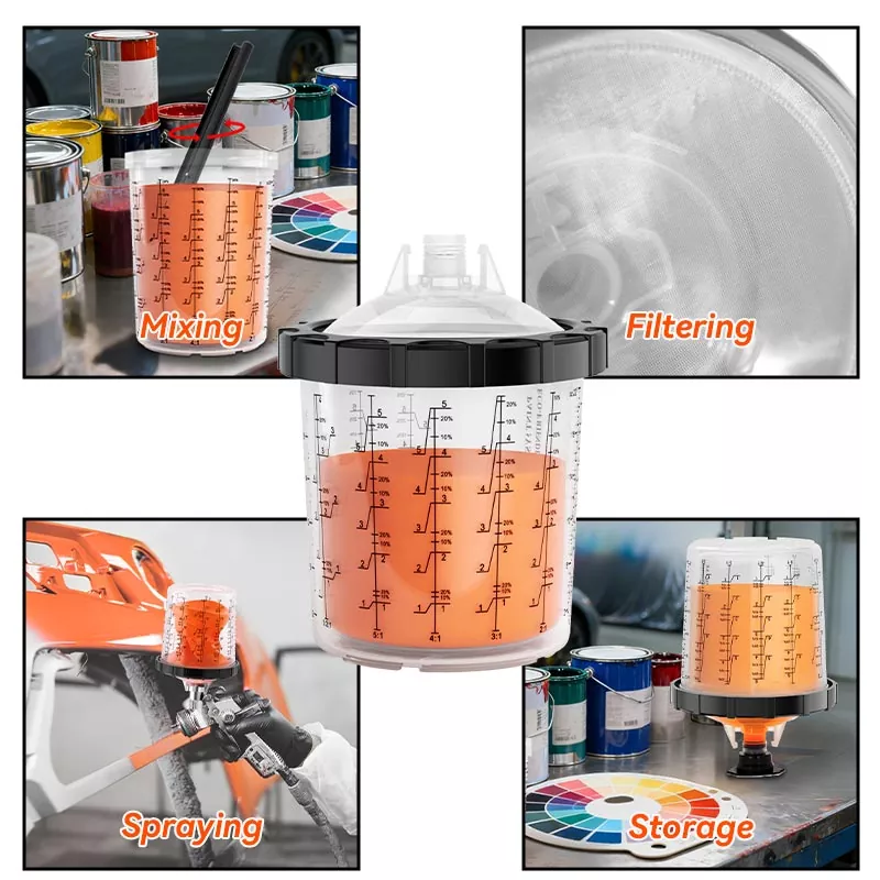 Il sistema di tazze di vernice usa e getta da 800 ml 1.0 contiene 28,5 once fluide (850 ml) di vernice, è ideale per riparazioni di 4 pannelli o meno di materiale, compresi grandi lotti di vernice trasparente. Questa gamma è stata sviluppata per migliorare l'efficienza del lavoro e la qualità dello spruzzo al fine di soddisfare le aspettative di ogni pittore. Il sistema di tazze di spruzzo usa e getta è un'ottima alternativa alle tazze di spruzzo riutilizzabili perché rende il processo di spruzzatura più pulito ed efficiente. La vernice può essere miscelata direttamente nella tazza spray e dopo ogni utilizzo è necessaria solo una pulizia minima. Se desideri vendere all'ingrosso una tazza per pistola a spruzzo usa e getta, contattaci per ottenere campioni gratuiti da testare.