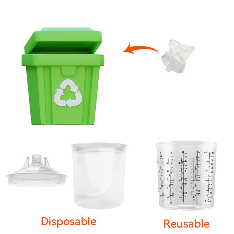 • Il design leggero riduce l'affaticamento:Con un peso di solo un terzo rispetto alle tradizionali tazze in metallo,Tazze monouso per pistola a spruzzoridurre significativamente lo sforzo del braccio durante l'uso prolungato.