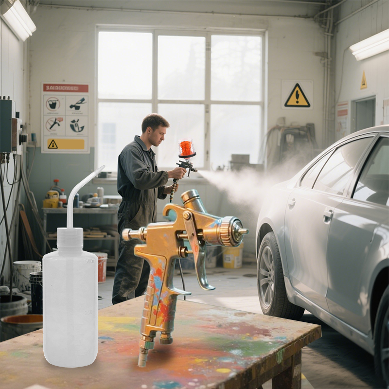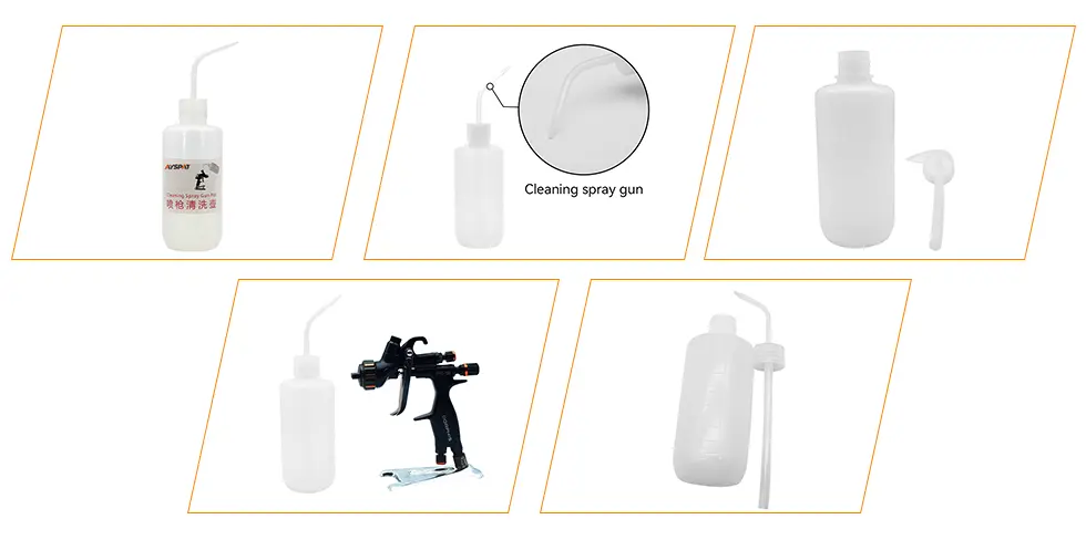 Ayspat Spray Gun Washing Pot è un efficiente strumento di pulizia della pistola a spruzzo con un eccellente effetto di pulizia. Può sciacquare rapidamente la vernice rimanendo nella pistola a spruzzo, che può proteggere meglio le parti di precisione all'interno della pistola a spruzzo. La pentola di lavaggio della pistola a spruzzo è facile da usare e l'intensità e la direzione del flusso del liquido possono essere controllate con precisione spremendo il corpo della bottiglia. Dopo l'operazione di pittura, usa la pistola per il lavaggio della pistola per caricare il solvente per eliminare le macchie dei tubi complessi all'interno della pistola a spruzzo, che può mantenere la pistola a spruzzo e estendere significativamente la sua durata di servizio. La bottiglia di lavaggio delle armi è realizzata in materiale PP morbido e leggero, che è resistente alla corrosione da solventi come acetone e toluene. È una soluzione ideale per la manutenzione della pistola a spruzzo.